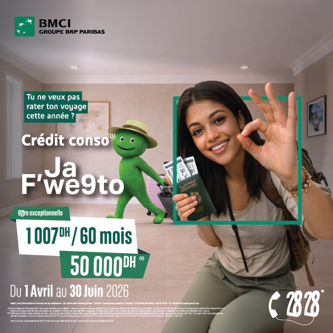 Du 1ier avril au 30 juin 2026, profitez de solutions flexibles avec des montants de crédits de 5.000 jusqu’à 315.000 DH, sur une durée allant jusqu’à 84 mois.